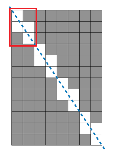 - 대각선이므로 세로줄기준 최소 1칸은 차지할수 밖에 없다.